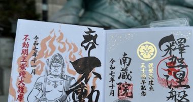 先月の涅槃像に引き続き南蔵院の不動明王の期間限定御朱印の絵を描かせていただきました!実はこのお話をいただいた時は不動明…