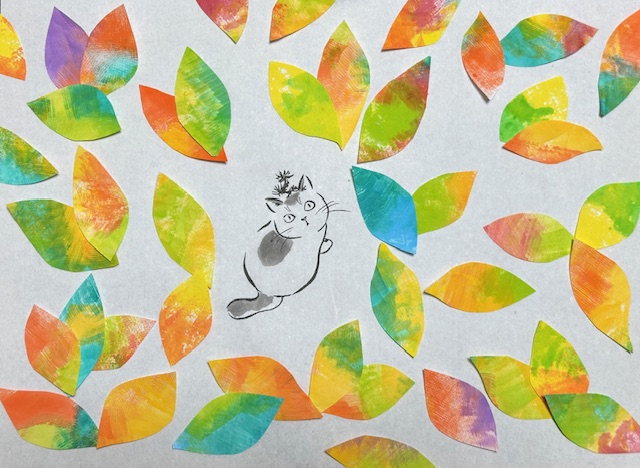 カラフルな色で葉っぱを描く作業は新鮮でした。