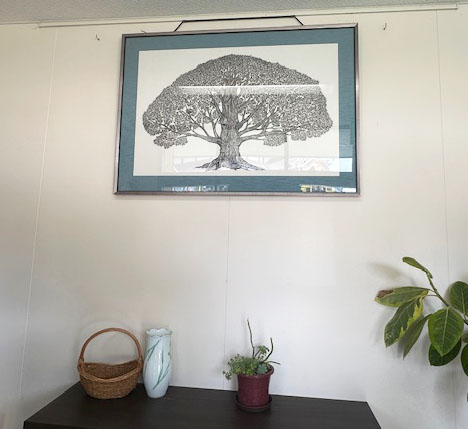 その日に幼稚園から大きな樹の絵を持ち帰り、アトリエで糊が貼れてないところをくっつけたり、