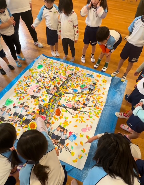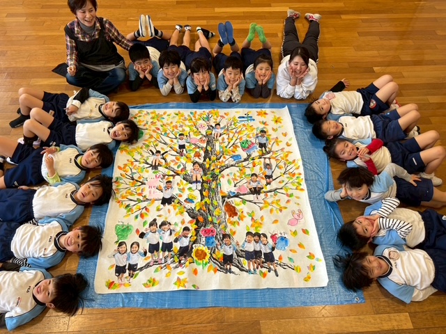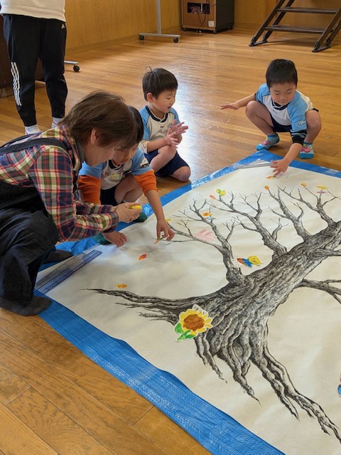 先日、佐賀の幼稚園で大きな樹の作品を子供達と一緒に作ってきました!